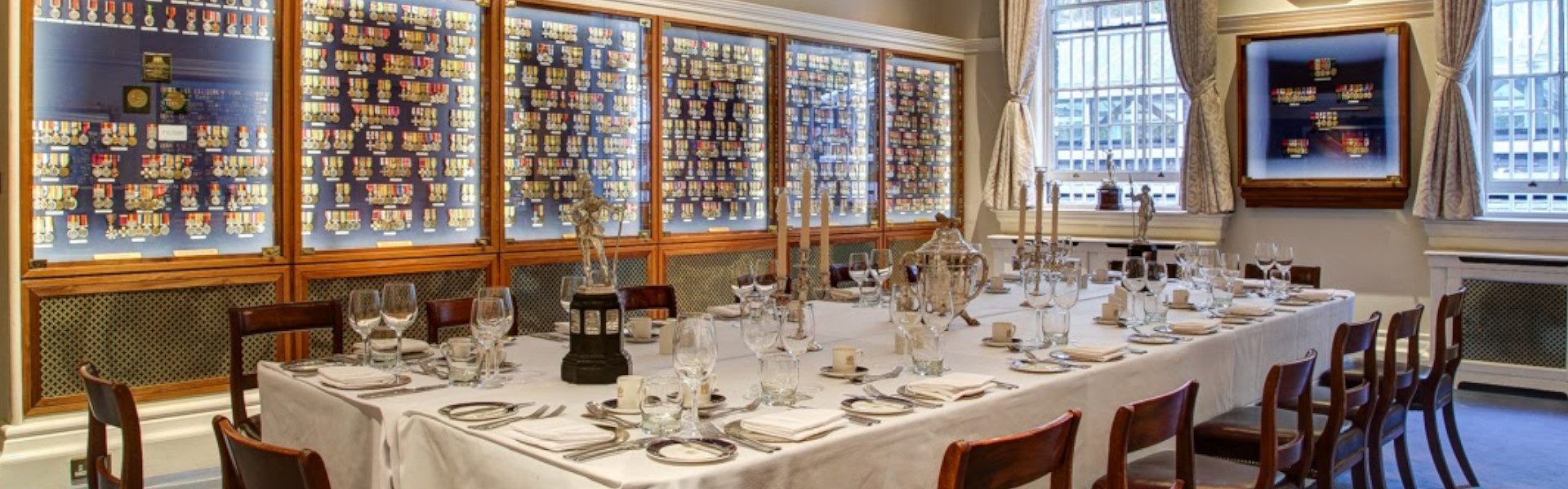 …lunches, meetings, dinners and breakout sessions from larger events being held in the nearby Long Room. As the room only accommodates a maximum of 32 diners, guests to an event in the Medal Room will enjoy its intimate environment as well as its unique displays.