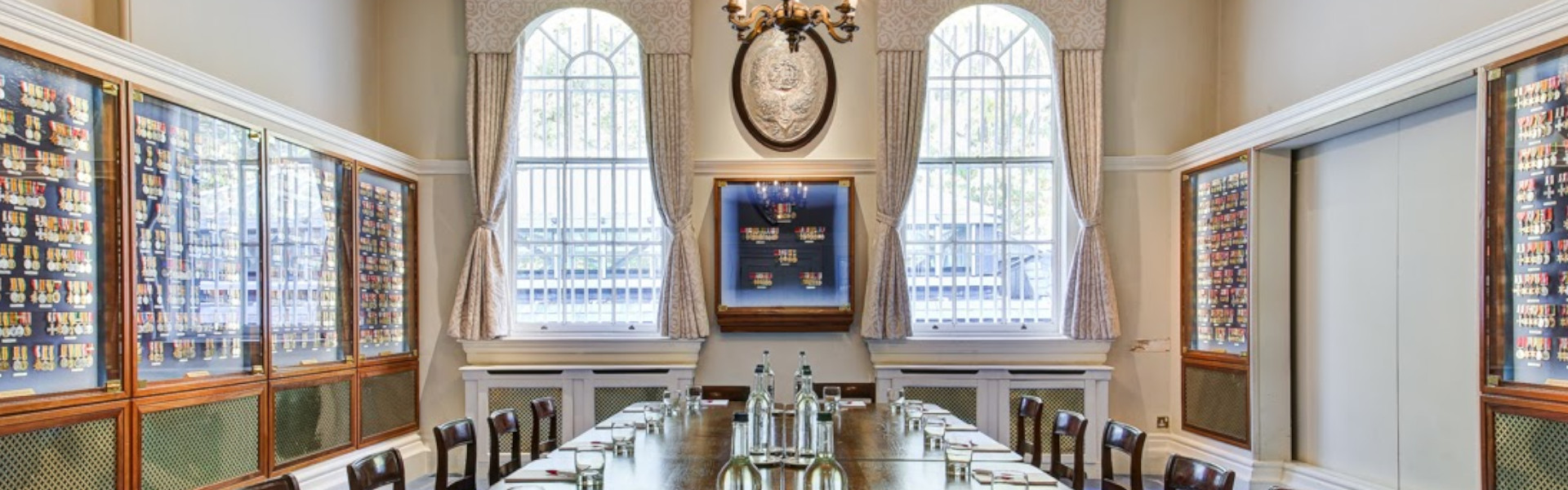 The light-coloured walls and high ceilings in this space create the perfect setting in which the fabulous display of medals can take centre stage. The beautiful and moving collection is not only an interesting talking point for guests but also an aesthetically pleasing backdrop to a range of events and meetings.