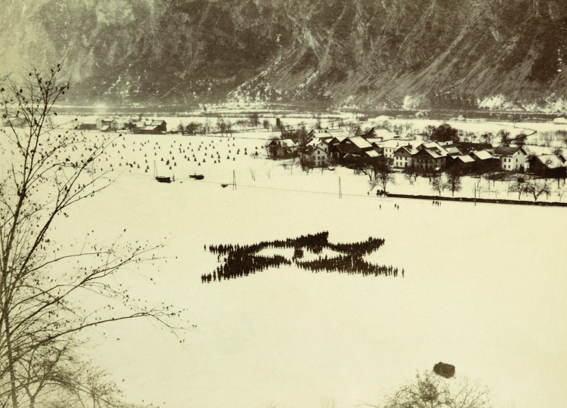 HAC's 2nd Battalion create a star shape in the snowy landscape, Imst, Austria 1919 (HAC Archives)